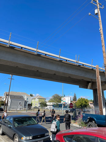 To pursue restorative justice, we needed to understand the 'big picture' down to the individual. Therefore, we first conducted a site analysis by walking around the area and talking to residents, small businesses, and people passing by. At first glance, we can clearly see the remnants of urban renewal. Instead of a lively hub, we encountered disconnected infrastructure, oversized industrial centers, and wide, empty roads. These planning decisions have left behind an environment where underutilized vacant lots sit next to long-standing homes, creating an atmosphere that feels transient and isolating rather than rooted and communal. The immediate area surrounding the West Oakland BART Station exemplifies the neighborhood's fragmented landscape, a direct result of mid-20th-century planning that prioritized traffic over community.